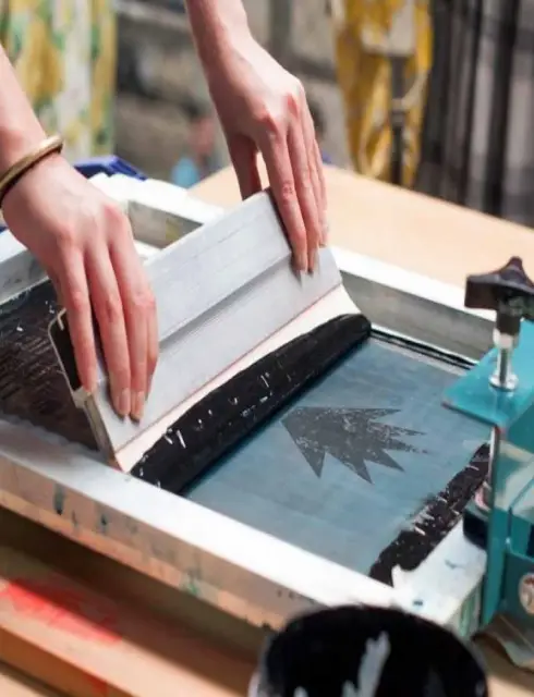 Teknik mencetak desain pada berbagai media seperti kain, kertas, atau plastik, dengan menggunakan screen (layar sablon) dan tinta, serta melibatkan proses manual yang bergantung pada keterampilan dan keahlian tenaga manusia.